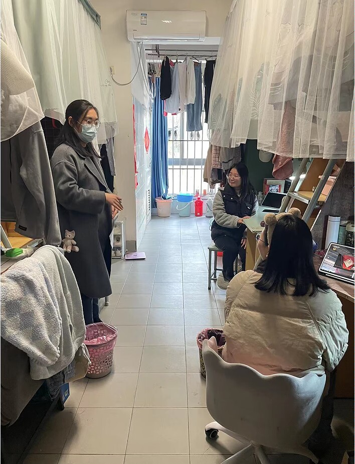 全体辅导员走访学生宿舍,实地了解学生近期在宿舍的学习、生活、心理等情况,为同学们提供更加贴心的关怀与服务。