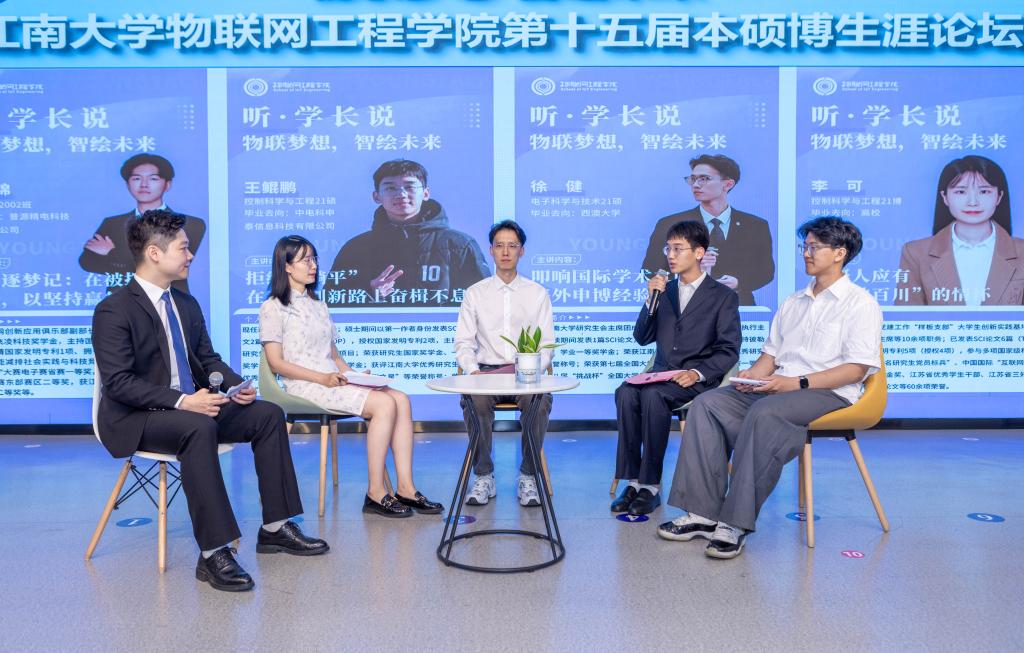 在个人选择更多元、诉求表达更多样、思想意识更多变的背景下,本硕博论坛以解决不同培养阶段学生所面临的创新科研、就业困惑为出发点,邀请优秀学子共聚一堂,共谈学习成长,共话梦想未来。未来,学院将进一步拓展论坛的辐射效应,结合物联学子生涯发展方面的所思所想、所困所惑展开切实思想引导,引领有志青年争做走在时代前列的奋进者、开拓者、奉献者。