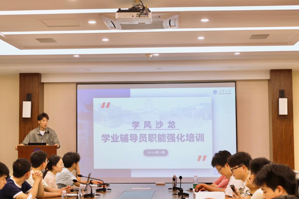 在B222会议室举办学业辅导员职能强化培训活动。学风扎口辅导员谢幸福主持会议并做主要培训,微电子2101班吕文娟作为优秀学业辅导员代表受邀分享工作经验,60余名学业辅导员深度参与。