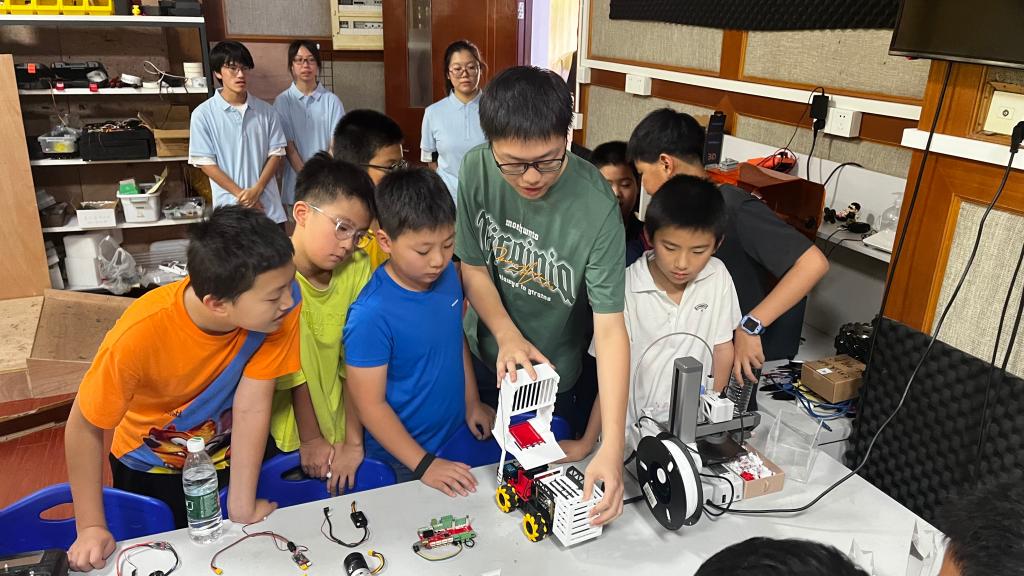I-link科普协会的成员们担任讲解员。在讲解员的热情引导下,“江小娃”分别走进RoBoMaster俱乐部、机器人俱乐部、智能车俱乐部和科普研学基地,各式各样的智能车、机器人精彩亮相,其自主运行、自动避障的奇妙行驶表演吸引了“江小娃”的目光。“小车为什么只会沿着白线行走?”“小车是怎么感知路线的?”“这些代码分别起到了怎样的作用?”江小娃们纷纷提出疑问。在志愿者耐心细致、深入浅出地讲解下,现场氛围热烈,江小娃们像海绵一样汲取科技知识,科创兴趣被大大激发。