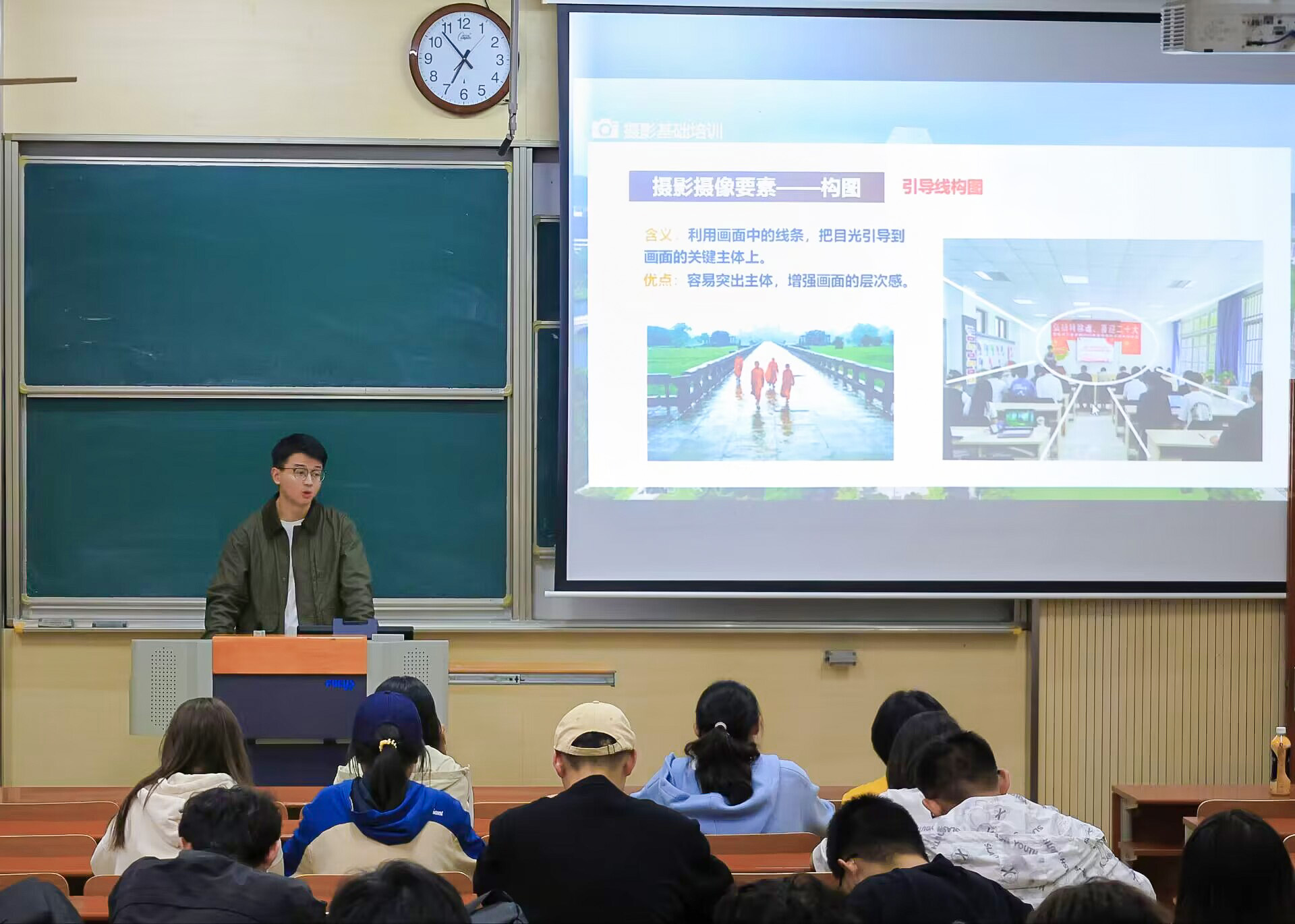 新媒体工作室指导老师曾磊、新媒体工作室负责人田雨蒙作为主讲嘉宾出席活动,新媒体工作室、班级宣传委员、学生组织等近60余人参加此次培训。