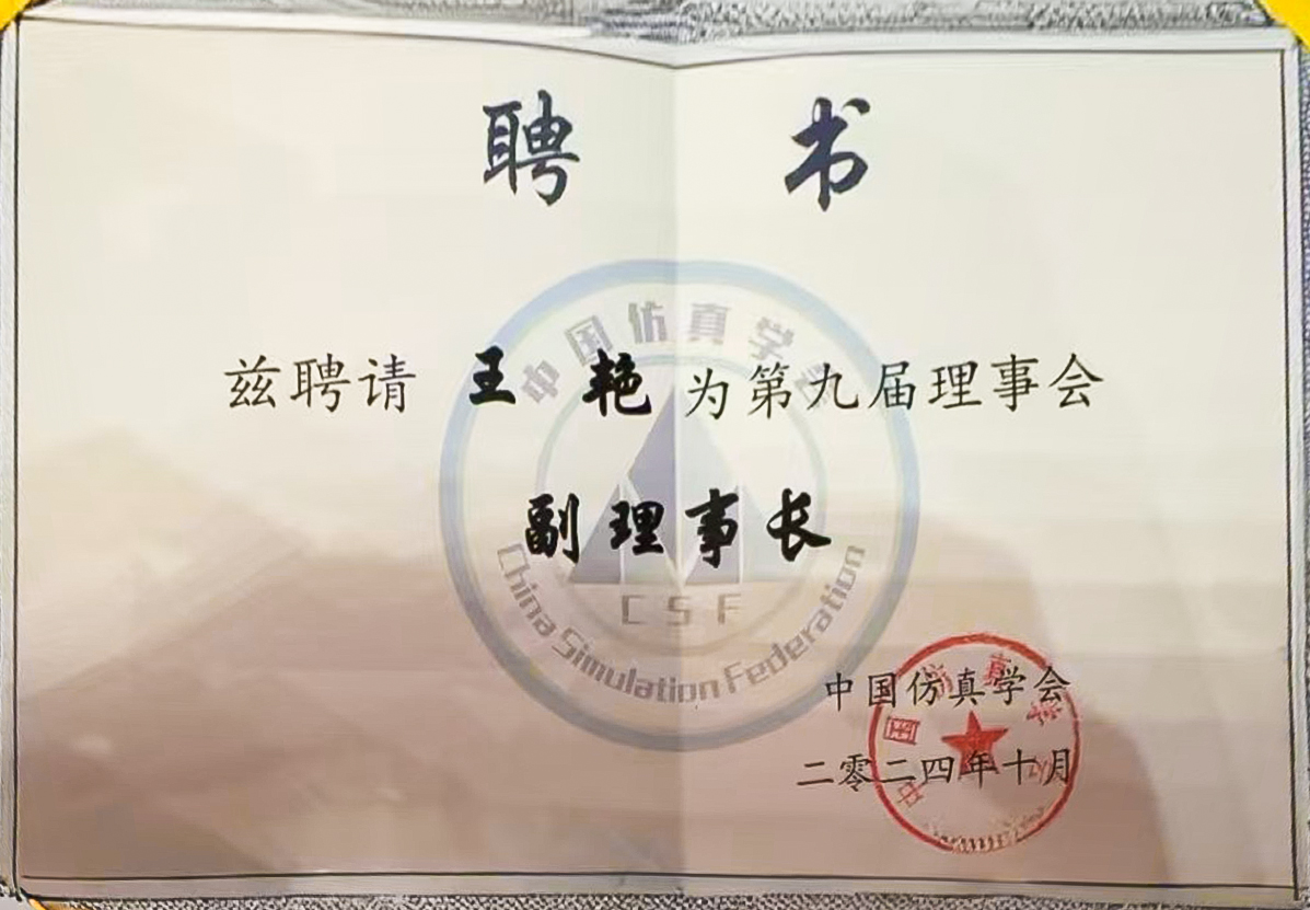 91探花 王艳教授当选中国仿真学会第九届理事会副理事长