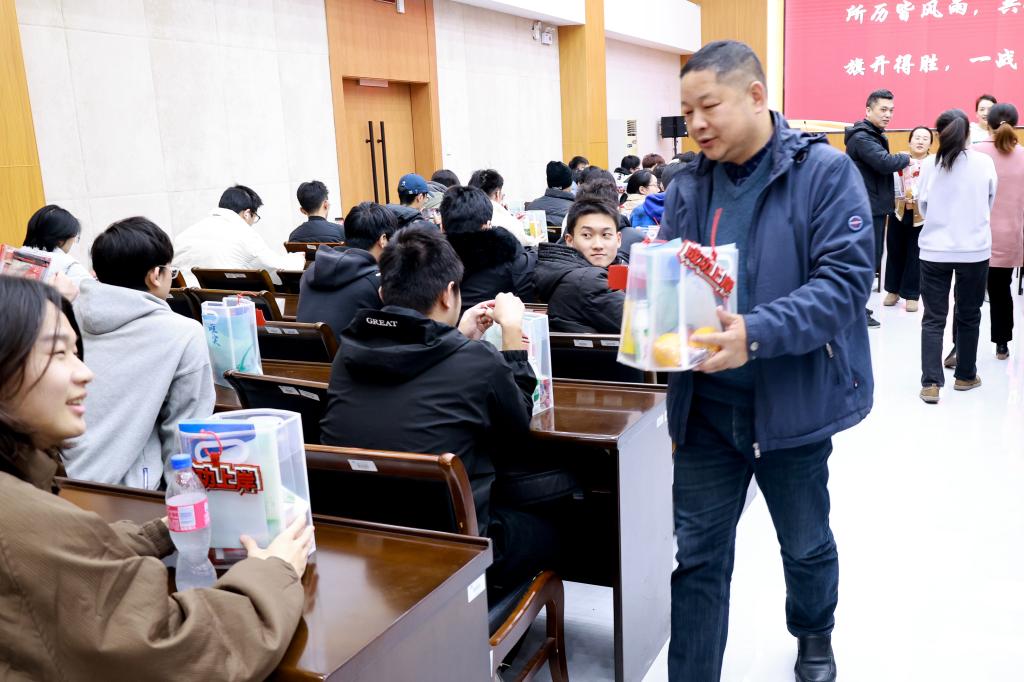 赵鑫作为班主任代表向全体考研学子送上祝福和关切。她结合自身经历,向同学们分享考前及考试中的各项注意事项,她鼓励大家,考研最重要的就在于坚持,希望大家能够按照既定的节奏,稳扎稳打,保持好身体健康,调整好心理状态,胜利到达终点。