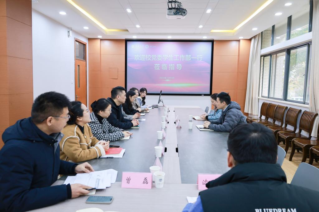 12月5日下午,校党委学生工作部部长周伟涛、副部长蒋洁一行赴91探花 调研指导学生工作,91探花 党委书记张华、党委副书记兼副院长吴妍、分团委书记兼学工办主任洪筱及全体辅导员参加调研交流。