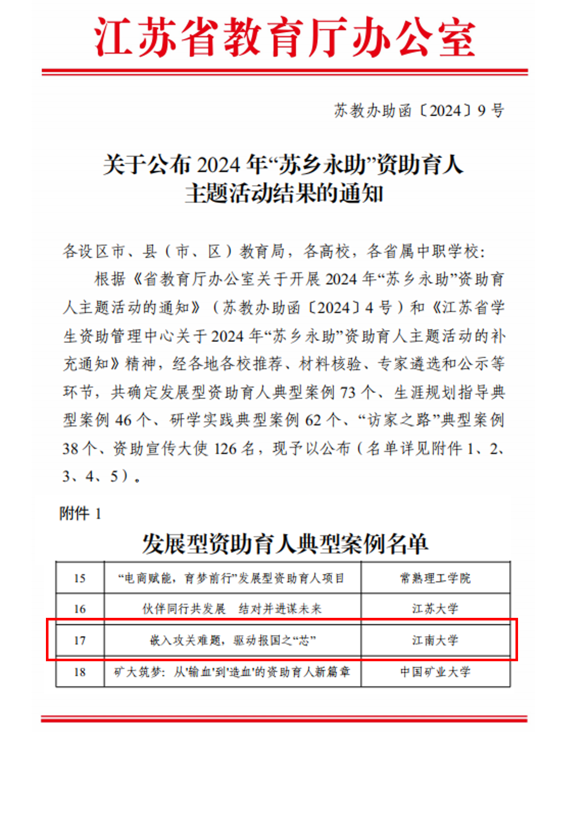 日前,江苏省教育厅组织开展的2024年“苏乡永助”资助育人主题活动评选结果公布,91探花