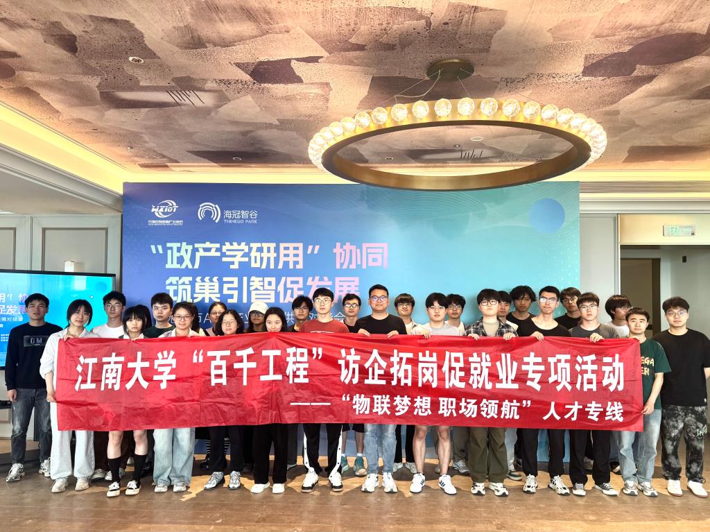 为深入落实教育部“访企拖岗促就业”专项行动要求和工作部署,扩宽毕业生就业通道,5月21日下午,辅导员沈滔带领30余名本硕物联学子走进了由无锡市物联网产业协会、无锡海冠智谷科技园主办的无锡市AIoT产业人才供需对接会,为物联学子搭建起“政策+平台+就业”的立体对接场景。