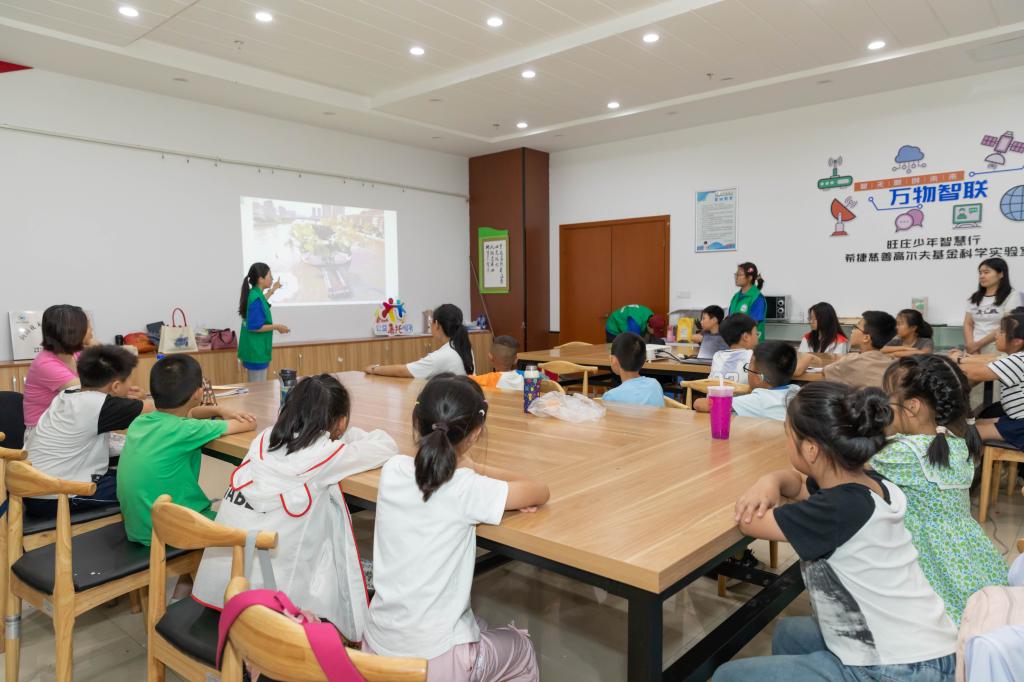 “小河长”启航:童心绘就碧水蓝图。同日下午,“小河长”环保认知地图DIY活动吸引了30余名小学生。实践团成员分组指导孩子们动手创作:描绘心中理想运河、制作垃圾分类示意图、设计环保宣传标语。孩子们热情投入,将清澈河流、清晰分类标识和稚嫩有力的环保标语融入作品,表达对运河生态的理解与愿景。活动在孩子们心中播下环保种子,也锻炼了团队的组织协调能力。“看到孩子们认真画‘小鱼在干净水里游’,写‘保护运河水就是保护我们的家’,那一刻特别欣慰。”主讲科普课堂的孙涵同学看着作品,充满成就感。