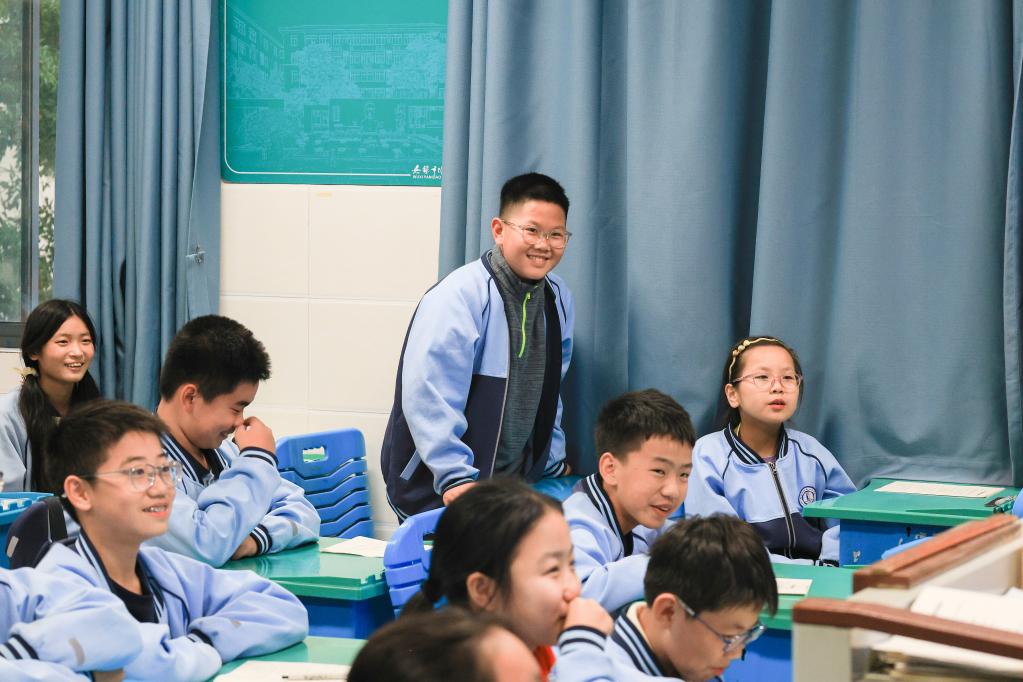 此外,宣讲团成员还设计了丰富的生涯体验活动,带领学生探索自身的同时,帮助他们找到个人特质与社会需求的契合点。整场活动将科技创新思维与生涯教育理念有机融合,使学生在体验中认识自我、在互动中思考未来。来自初一(2)班的胡栋鑫小朋友表示,这次活动让自己开始认识到职业规划的意义所在,课堂上的互动游戏让他觉得既有趣又受启发,也让他意识到要从现在开始更加努力学习、认真听课,希望未来能够成为一名卓越的无人机工程师,用科技的力量建设更加美好的祖国。
