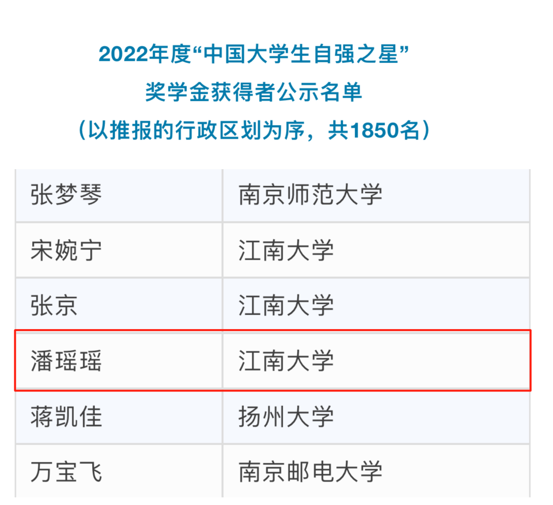 潘瑶瑶同学荣获2022年度“中国大学生自强之星”。