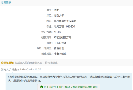 终于功夫不负有心人,杨振华以推免成绩专业第一保研至湖南大学电气工程专业,实现了他的“江湖”梦。从江南的物联创新到湖南的岳麓书香,他的追梦之旅,是一场跨越时空的知识探索和心灵修行。他坚信,在未来的电气江湖中,他将继续书写属于物联学子的新篇章。