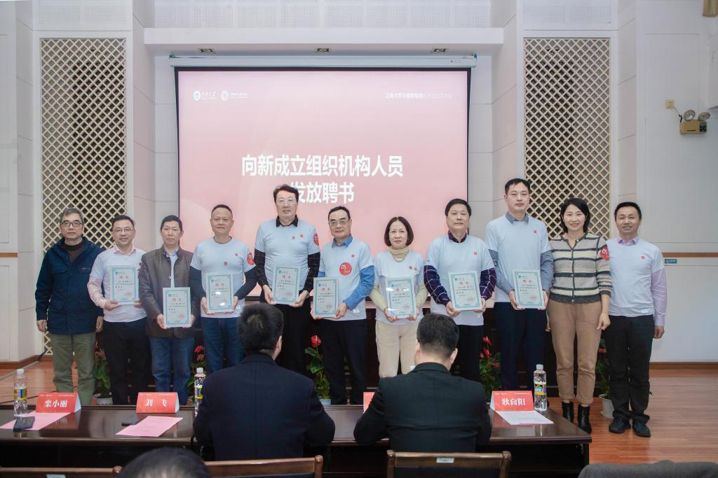 无锡物联网校友会(团体)成立大会的批复》。大会审议通过了无锡物联网校友会组织机构成员名单,倪松涛向新当选会长黄城芳授牌,周云龙为新当选秘书长刘韻授旗,与会领导为校友会组织机构成员颁发聘书。